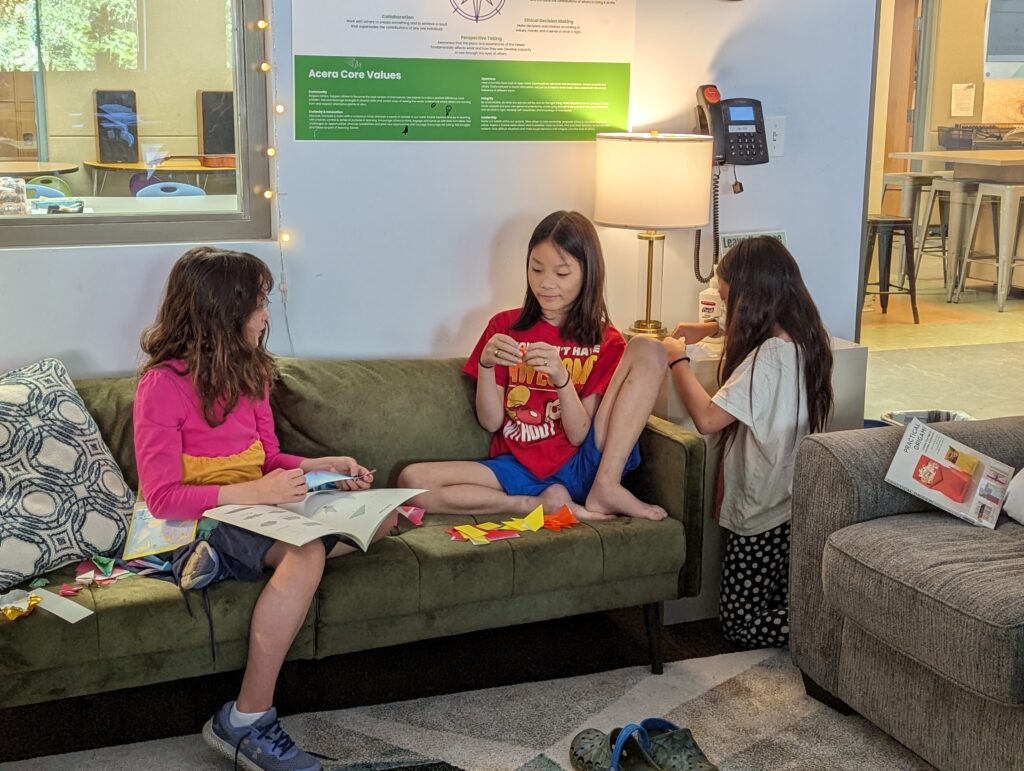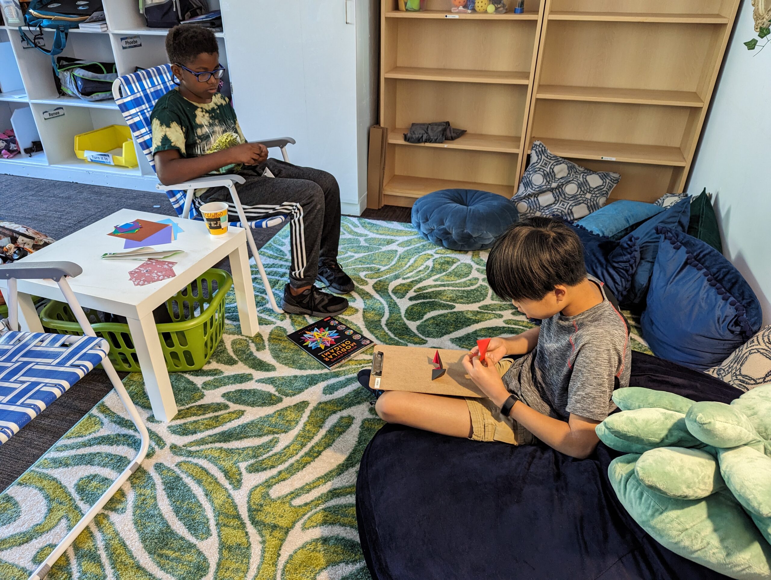 Of my favorite things about teaching at Acera is the chance to run Creativity Wednesday sessions each week. It’s a fun time to extend beyond my “usual” academic subjects and share other passions and interests with students in an environment that fosters exploration. Origami has always been an interest of mine — I won’t say “talent”, because I don’t think I’m that great at it. But I love doing it, and I find it to be an incredibly centering activity. It allows me to focus on one simple thing, and it’s definitely a form of meditation and stress relief for me. As an engineering teacher, I also understand and appreciate the deep connections origami has to mathematics, design, and stimulating the regions of our brains responsible for spacial relations and 2D to 3D thinking. So when it came time to decide on what I wanted to do for my Creativity Station, I knew I wanted to combine my love for geometric logic with my love for mindfulness and self-care, so I created “Chill Origami Café”.
