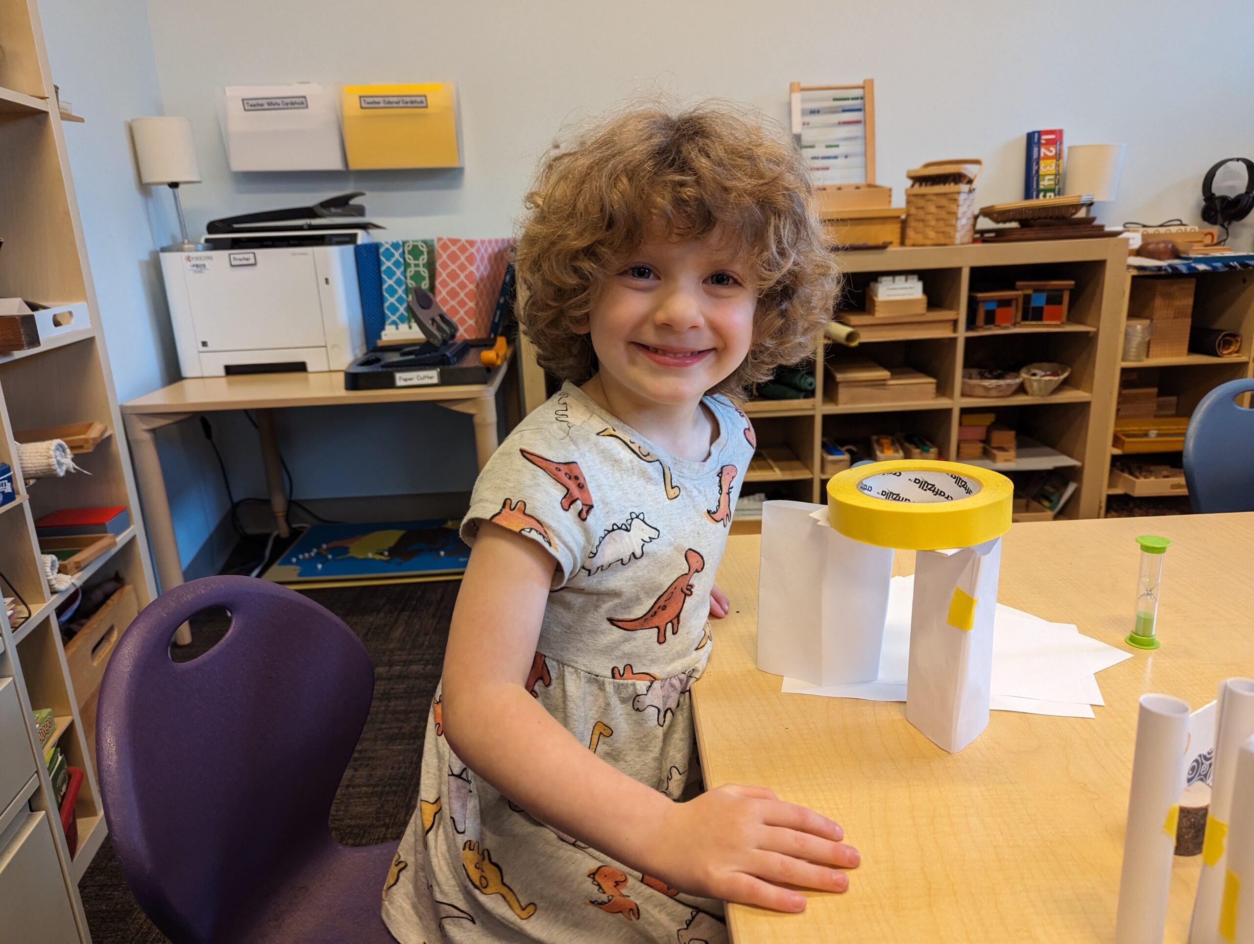 I’m new to working with this age group, and I’m excited to be spending every Monday afternoon in Room 1. Honestly, their makerspace is cooler than the whole InnoLab in my opinion. I’m really impressed with the depth and breadth of materials and tools they have, and how neatly they’re stored. It’s a gold standard that I aspire to. Beyond makerspace management, I’m learning so much about teaching and collaborating with Kindergartenters and First Graders. It’s really fun, and also very challenging in new ways. I was telling a friend the other day that now having taught the full spectrum of ages and topics, I will firmly state for the record that I had a much easier time teaching quantum physics to undergraduates than I’m having now teaching these brilliant small humans in Room 1. It’s a challenge I’m happy to rise to.