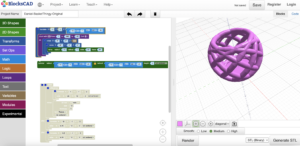 Today marked the first day of CAD, and both classes met over Zoom to learn the basics of BlocksCAD, my favorite CAD program for middle school students learning CAD for the first time. It’s not as simple as TinkerCAD, and not as complex as some of the more professional stuff like Blender or AutoCAD, and it uses a lot of mathematical and coding skills to produce unique work. Even today, students were telling me that they felt their brains “thinking differently” as they dug into the browser-based app. Both classes of students had a ball (or a sphere?!? 😁) exploring the different features and figuring out how to create some object challenges I gave them (a snowman, a planet with rings, a teardrop shape, etc.). And towards the end of the class, the real magic began to happen – students got excited about sharing their projects with each other!